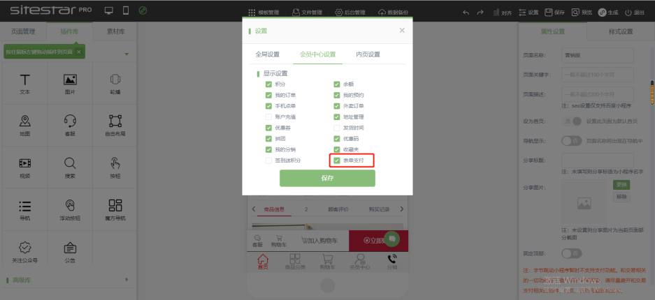 小程序端 建站前台:“设置” — “会员中心”— 勾选“表单支付”后,在会员中心显示“表单支付”即可查看支付的表单信息。